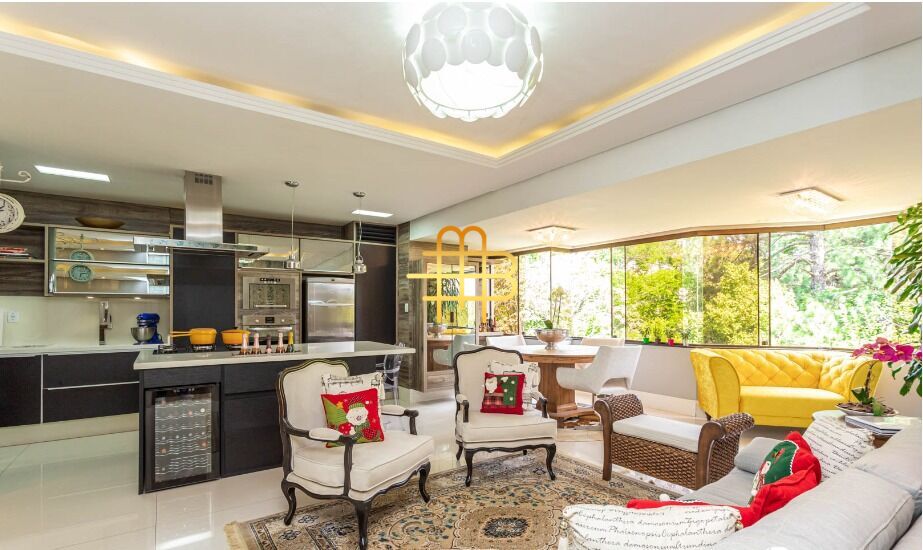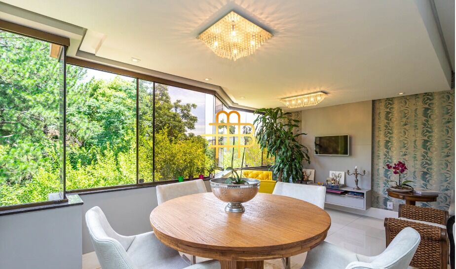 Na parte superior da cobertura, há um amplo espaço gourmet, ideal para receber, equipado com lareira e churrasqueira. Este pavimento possui acesso independente, com entrada exclusiva diretamente para o segundo andar da cobertura, trazendo praticidade e versatilidade de uso. A área externa complementa o ambiente com uma vista encantadora para as copas das árvores, criando um espaço único e acolhedor.