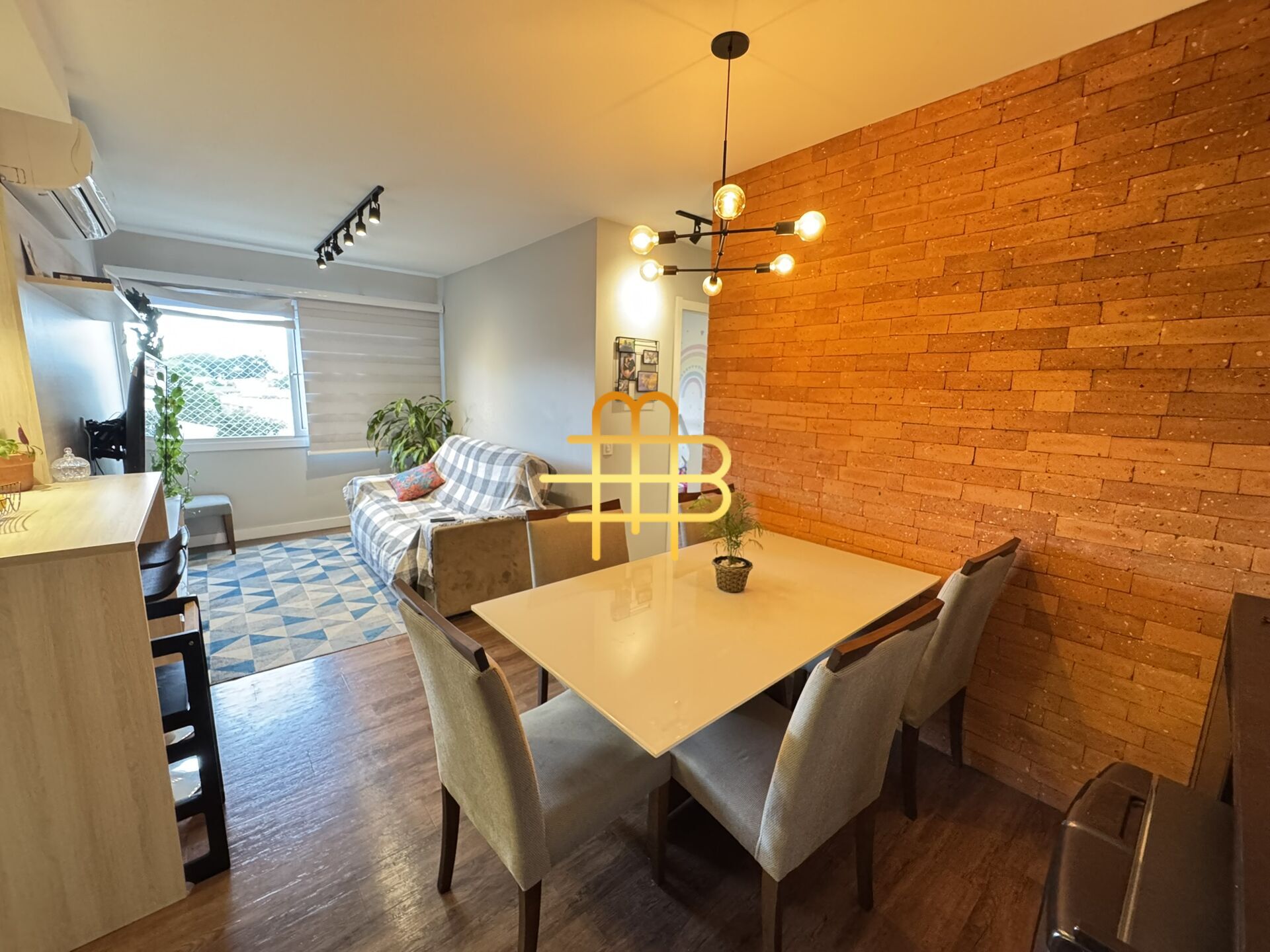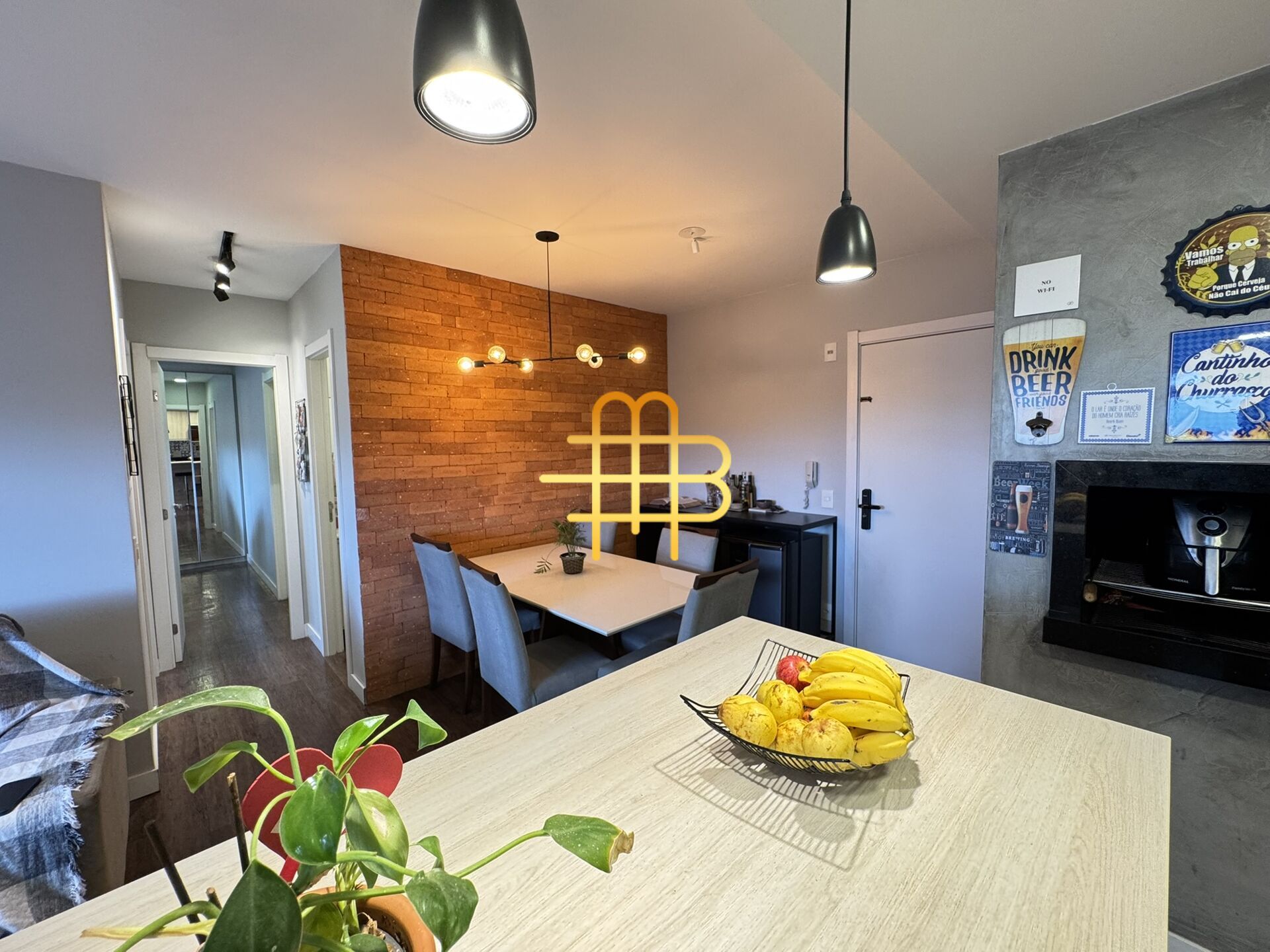 Móveis planejados: Cozinha, área de serviço, sala, dormitórios e banheiros Cozinha e área de serviço: Com churrasqueira integrada Sala de estar/jantar: Ambientes integrados e bem aproveitados Suíte: Ampla, com ar-condicionado e armário planejado Segundo dormitório: Com armário sob medida e bancada para estudos ou home office Banheiros: Com móveis planejados e ótimo acabamento Piso: Vinílico amadeirado em placas nas áreas sociais e íntimas; vinílico cimentício nas áreas molhadas
