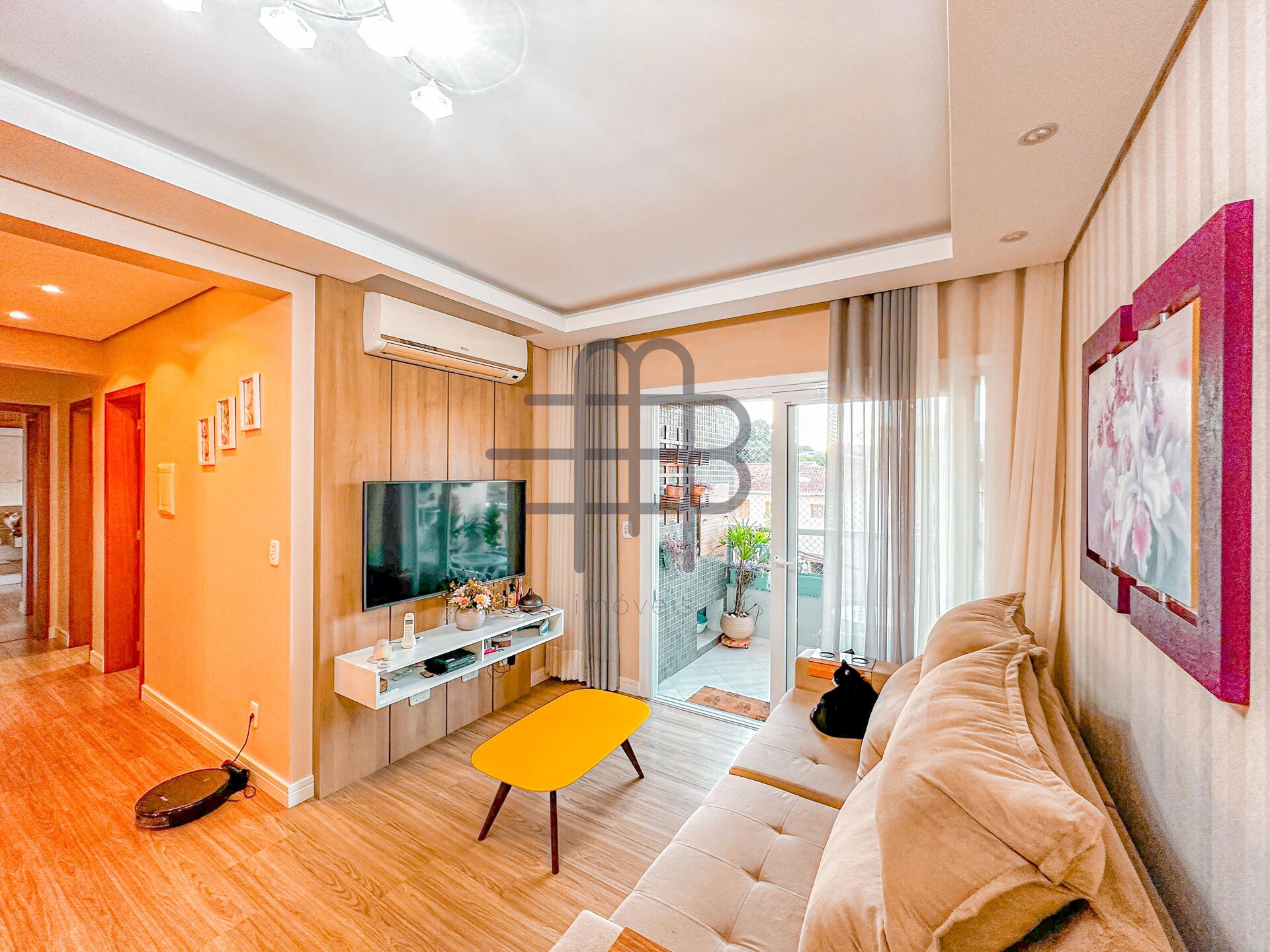 O imóvel será vendido mobiliado e possui 84 m² de área privativa; 2 dormitórios, sendo uma suíte; sala de estar e jantar integradas; cozinha com ilha; área de serviço; sacada com churrasqueira e uma vaga de garagem coberta.