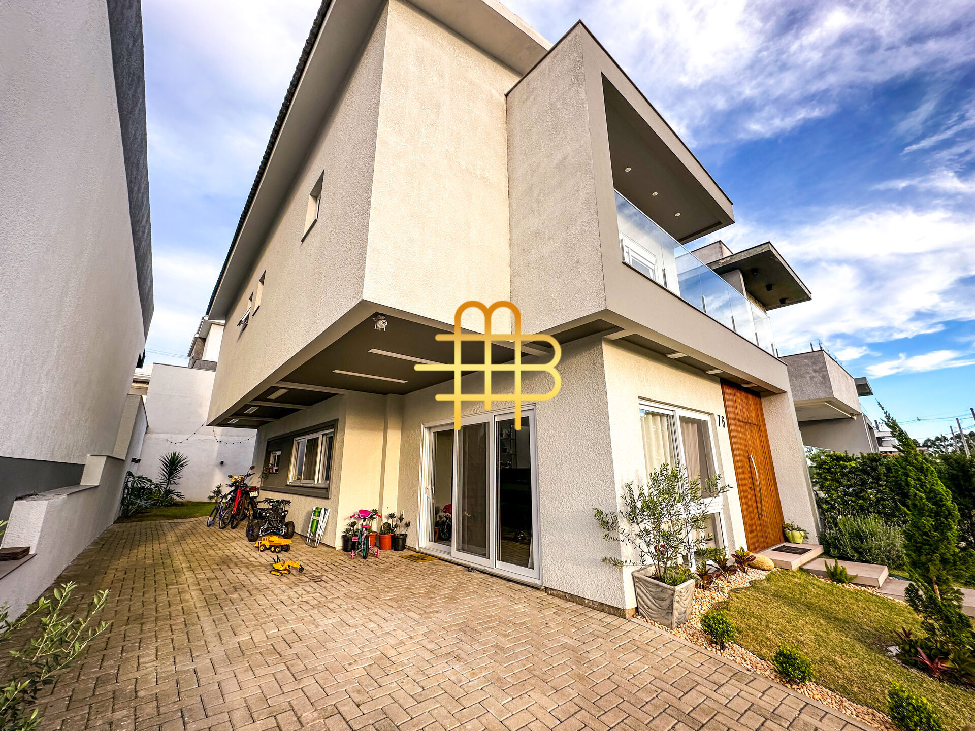 Composta por 4 dormitórios, sendo uma suíte Master com closet e hidromassagem, além da possibilidade de um dos cômodos serem escritório. Living integrado com lareira; Cozinha planejada com ilha; Banheiro de visitas; Lavanderia; Pátio nos fundos com Espaço Gourmet com churrasqueira e despesa. Possui vaga para até 3 carros e ainda beneficiar-se do sol da manhã e da tarde.